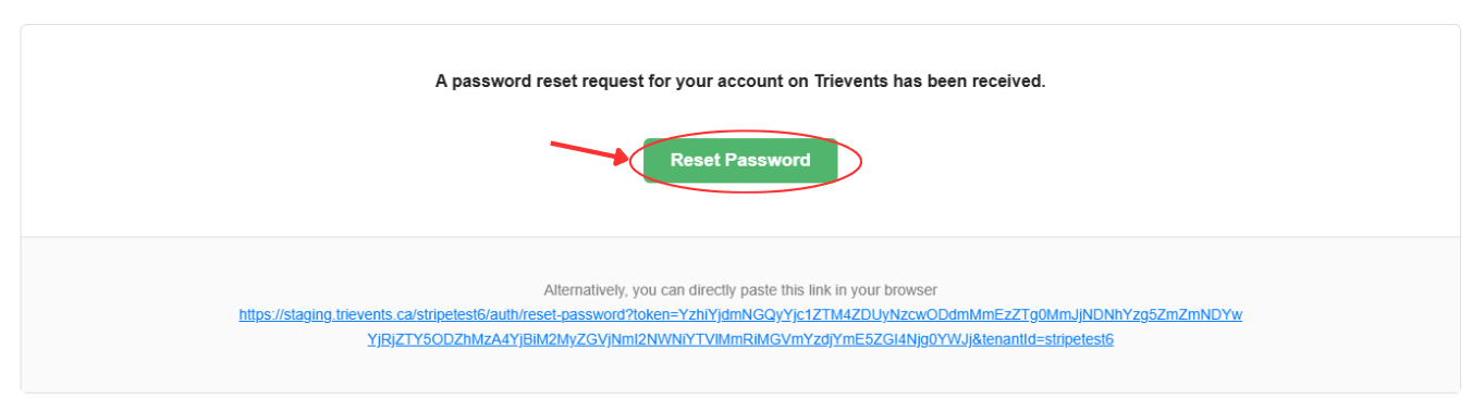 Go to your email inbox and open the password change email. Click on the Reset Password button.
