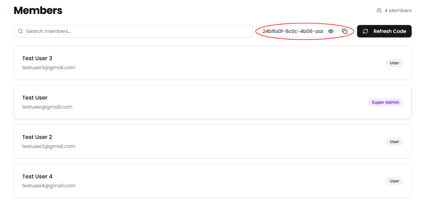 To add a member, you must first obtain the organization’s access code. This code is required for new members to join the organization.